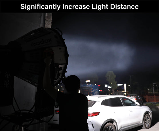The GODOX KNOWLED BeamLight Max90 is a Cinema-Grade Parallel-Beam Lighting Reflector, designed for use with Godox G-Mount fitting lighting Fixtures such as the KNOWELD MG1200Bi, and the MG2400Bi Cine Lights. With its cutting-edge optical design, the BeamLight Max90 produces a 5° near-parallel beam of light, minimising light fall-off enabling you to throw light over greater distances. It also significantly increases the effective light output from your light source, giving you more flexibility. This makes it perfect for replicating natural sunlight over long distances. the GODOX BeamLight Max90 is perfect for Cinematographers, Gaffers and DPs who are looking to get the most out of their Godox G-Mount LED Cine lights.