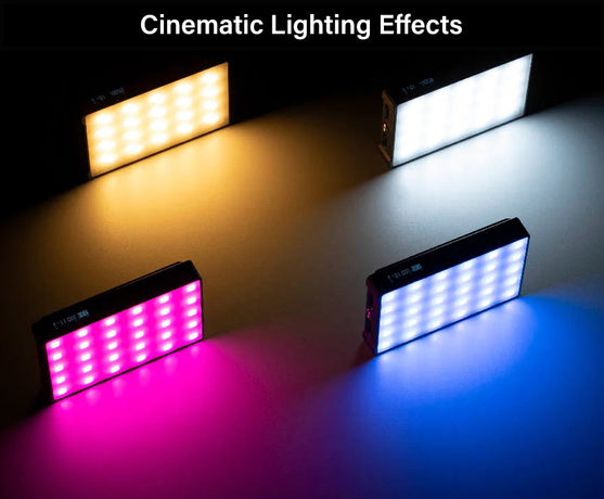 The GODOX KNOWLED C5R is a Pocketable Palm-Sized RGBWW Cinematic On-Camera LEDperfect for cinematographers who want to add splashes of colour to their film sets, to add mood and ambience to the scene for a more immersive cinematic experience. It features an HSI mode, which enables you to adjust the Hue and saturation of the light, giving you access to virtually any colour you can think of. It also has a CCT mode, enabling you to adjust the colour temperature of the light anywhere between 2500K and 5800K enabling you to match the light to the colour temper of your ambient lighting. It also has a CRI of 96+ and a TLCI of 97+, making the C5R RGBWW LED Panel suitable for broadcast usage. The C5R LED Panel is a great tool for Cinematographers, independent filmmakers and photographers to add a little spice to their projects.
