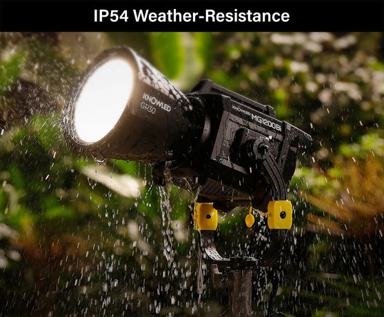 The GODOX KNOWLED MG1200Bi Bi-Colour LED Broadcast Lighting is an Ultra-powerful 1400W Bi-Colour COB LED Light fixture, which has Class-Leading performance, designed to launch your productions to new heights. Featuring a highly robust, build-quality, with intuitive controls, and IP54 Weather Resistance, the MG1200Bi is the answer to every Lighting Gaffer and Cinematographer’s dreams. The MG1200Bi has a CRI of 96+ and a TLCI of 96+, making it suitable for broadcast usage. It supports a plethora of professional control protocols including DMX512 and LumenRadio CRMX plus many more. It can also be controlled remotely using the GODOX RC-A6II, RC-R9II and RC-11 Remote controllers, or via the GODOX Light App using Bluetooth.