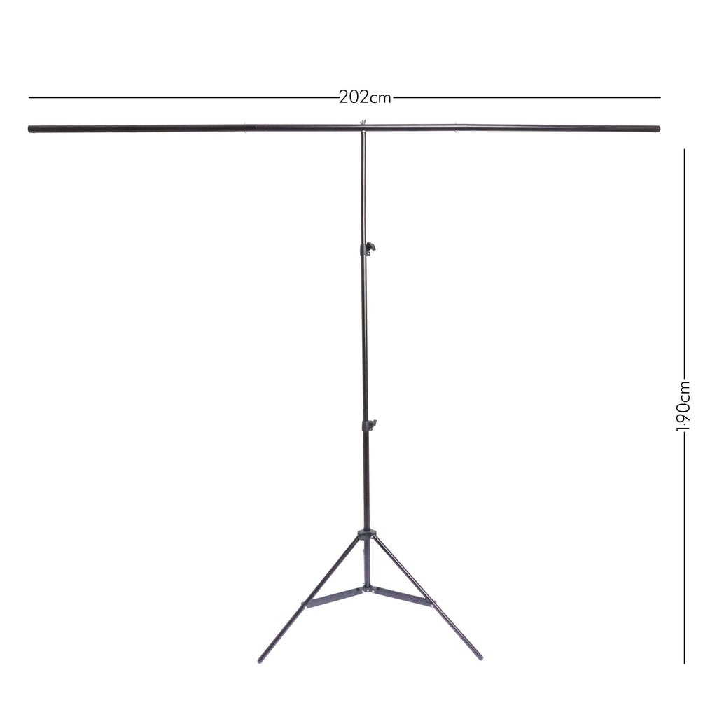 The T-bar backdrop stand features a 202cm aluminium crossbar, made up of three interlocking segments.