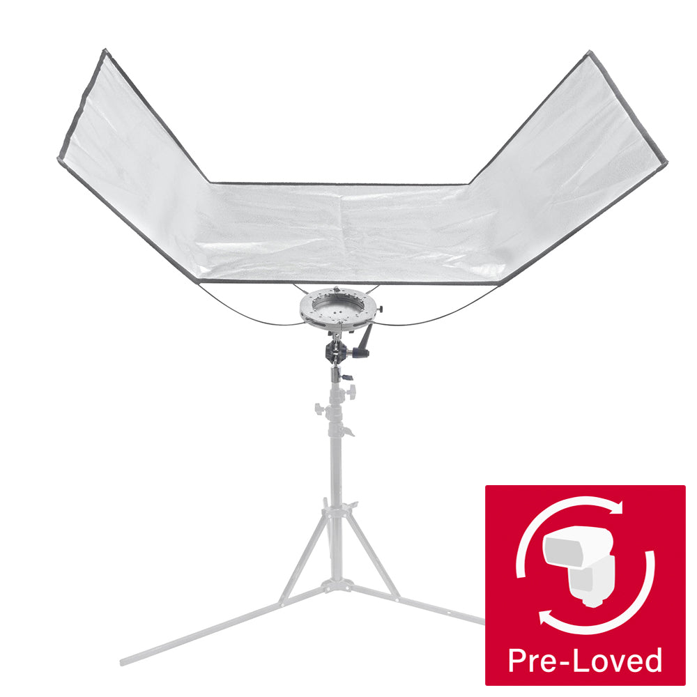 It can be broken down to fit into its carry case for easy storage and transportation, making it ideal for use on location or in the studio. The curved reflector is easy to set up and pack away to make it easily transportable. It features 3 different colours and is made of a hardwearing, durable material. It will give a unique catchlight on the subject and can be very desirable to those shooting beauty, fashion, portraits, weddings, events or commercial headshots.