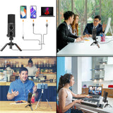 The compact tripod included with the Comica STM-USB allows you to rotate and adjust the microphone's angle for precise audio capture from a specific direction, while also enabling easy placement adjustments for recording multiple subjects.