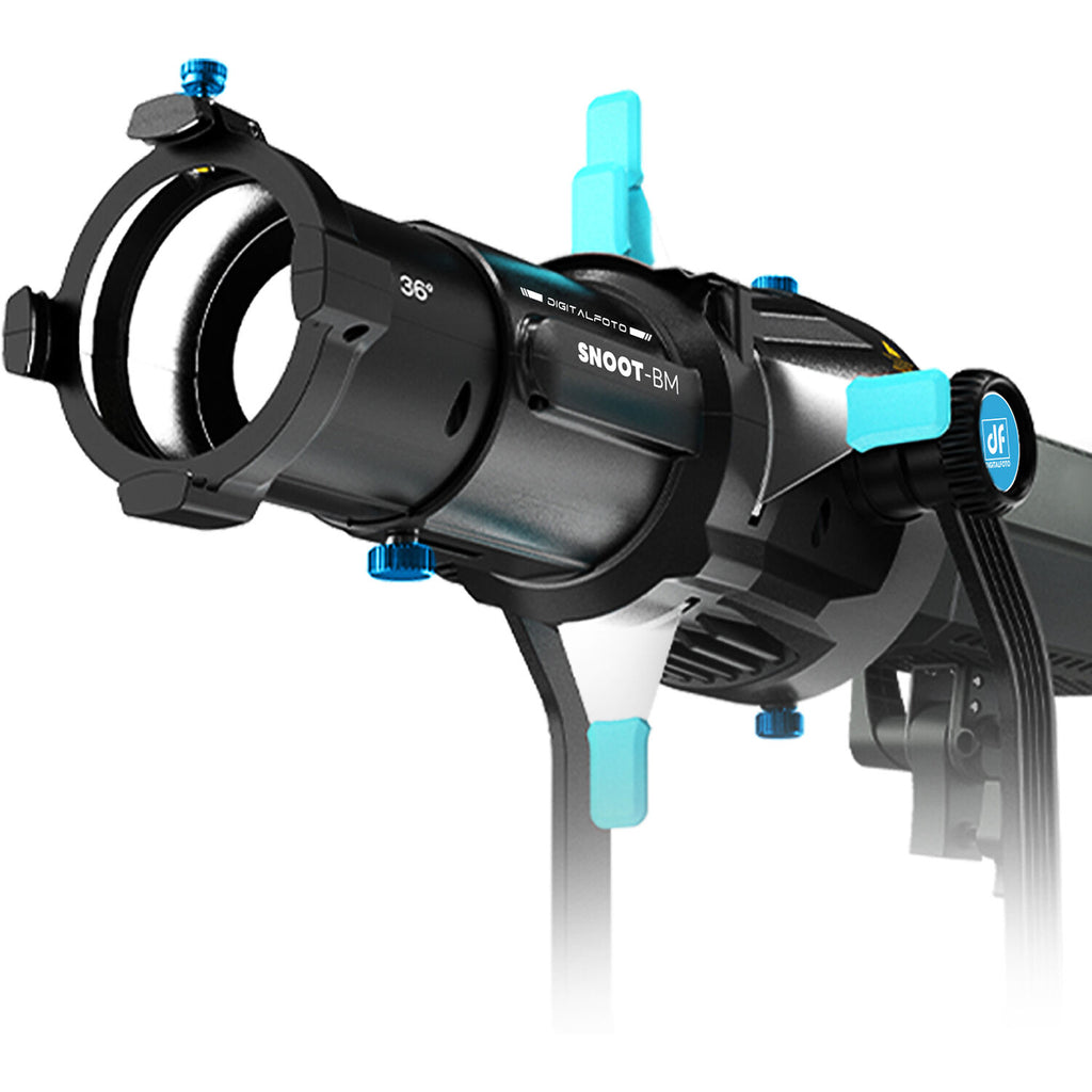 The DigitalFoto SNOOT-BM Projection Attachment is a professional light-shaping tool designed for photographers, cinematographers, and theatrical lighting designers who require precise control over focus, pattern projection, and beam shaping. Combining high-performance optics with a rugged yet lightweight aluminium build, the SNOOT-BM transforms compatible Bowens-mount LED lights into powerful projection systems. Ideal for creative studios, film sets, and stage environments.