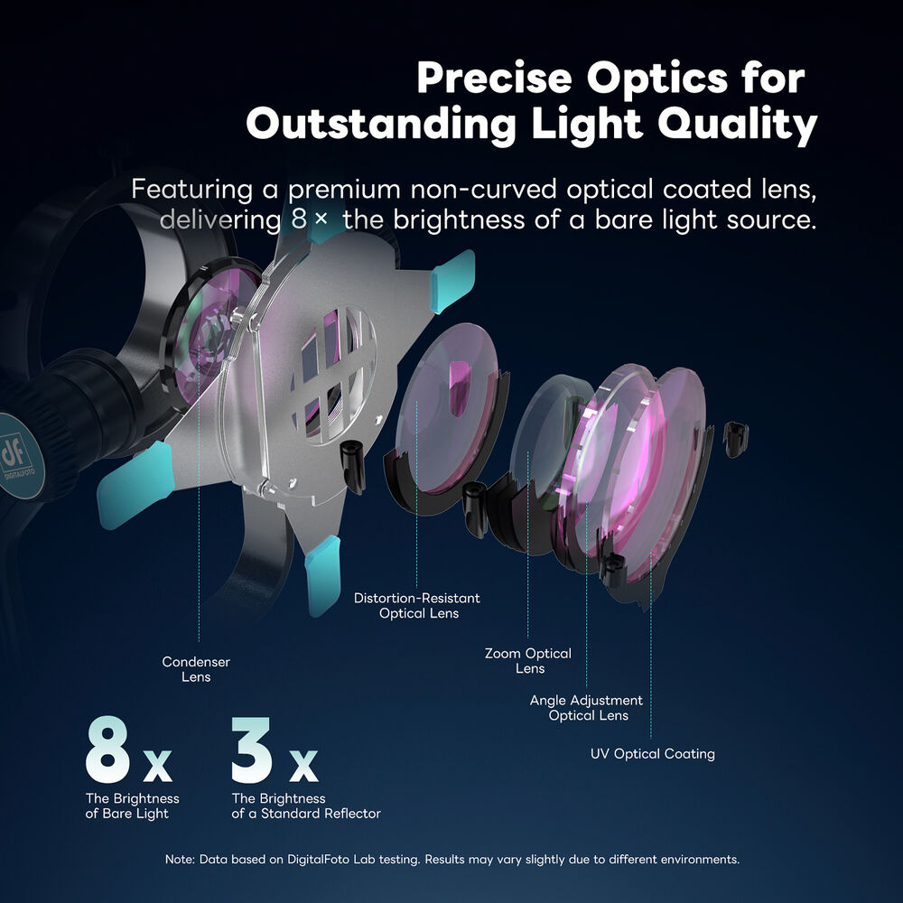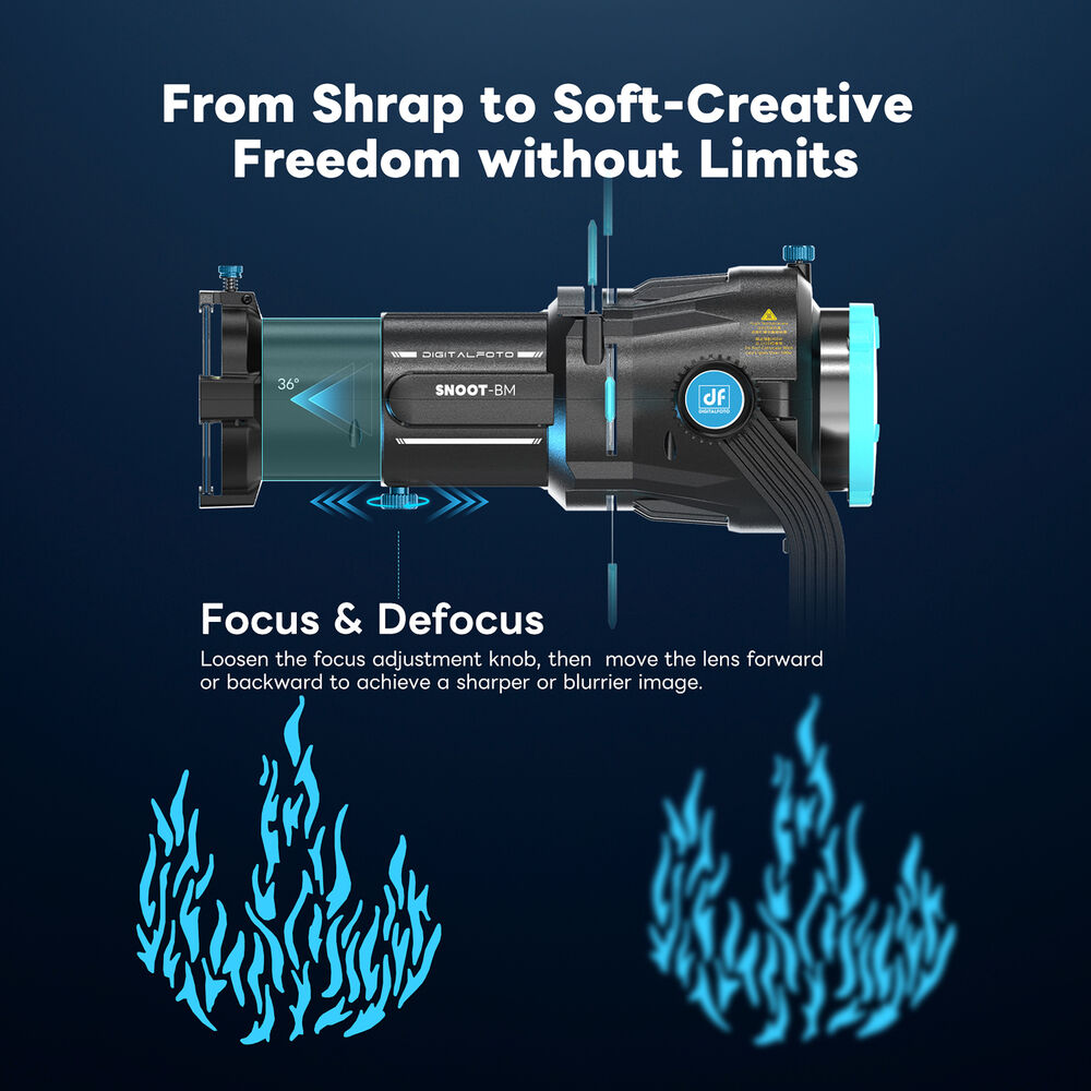 At the heart of the SNOOT-BM is a premium, non-curved, multi-coated optical lens engineered to deliver exceptional clarity and contrast. This advanced optical design produces up to 8× the brightness of a bare light source, ensuring crisp projections with minimal light loss—ideal for creative studios, film sets, and stage environments.