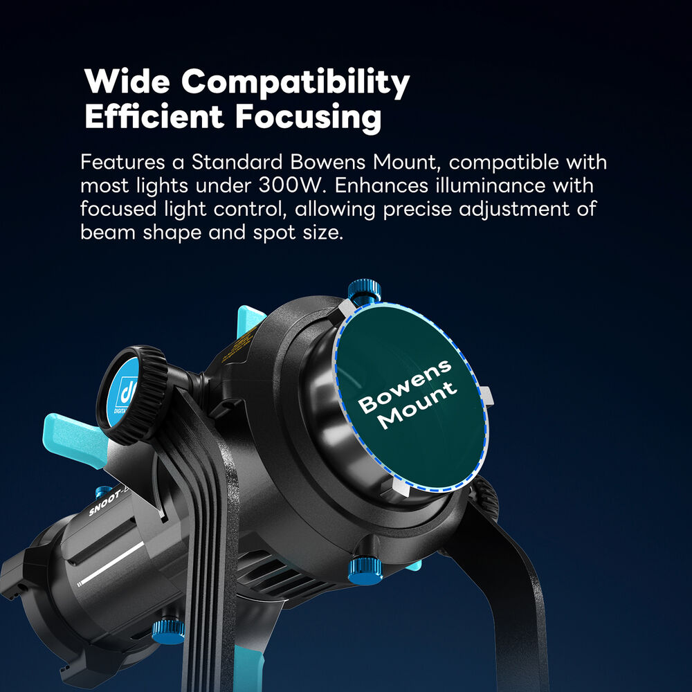 Featuring a Bowens S-Type mount, the SNOOT-BM is compatible with a wide range of COB LED studio lights up to 300W, making it a versatile addition to the kits of both photography and video lighting professionals.