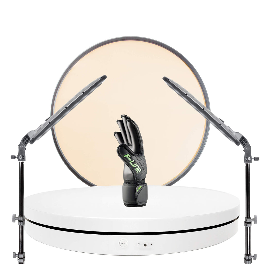The GLOWPAD Commercial LED Panel Light with Orbit Turntable Kit turntable kit has been created to include everything you will need to produce professional 360 product images for your eCommerce website. Having The ORBIT turntable is easy to use and will make producing 360-degree photos easily. All this together makes it the perfect option for those looking to create amazing-looking product photos for their website, which range from clothes, shoes, electronic devices, and accessories with great results. The 360° Product Photography LUMI400 turntable kit is a perfect partnership for photographing or filming products for e-commerce and for product catalogues.