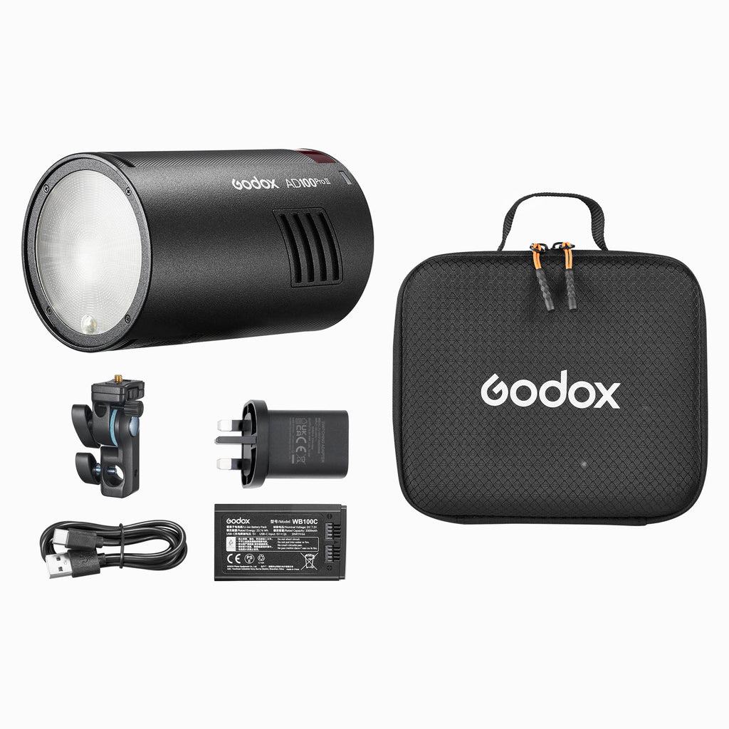 The Godox AD100Pro II Super Bright Compact Flashlight with S-Type Bracket Kit is an excellent solution for photographers who need a portable, battery-powered flash compatible with Bowens S-Type lighting modifiers. The Godox AD100Pro II Pocket Flash delivers a powerful 100Ws output in an ultra-compact design, making it ideal for on-location photography and small studio setups. Paired with the SMART Speedlite Adapter Bracket (Godox S2 Bracket), this kit allows seamless use of Bowens S-Type softboxes, reflectors, and other modifiers with compact flashes. Lightweight, versatile, and powerful, the Godox AD100Pro II lighting kit is perfect for portrait, beauty, and fashion photography, both indoors and outdoors.