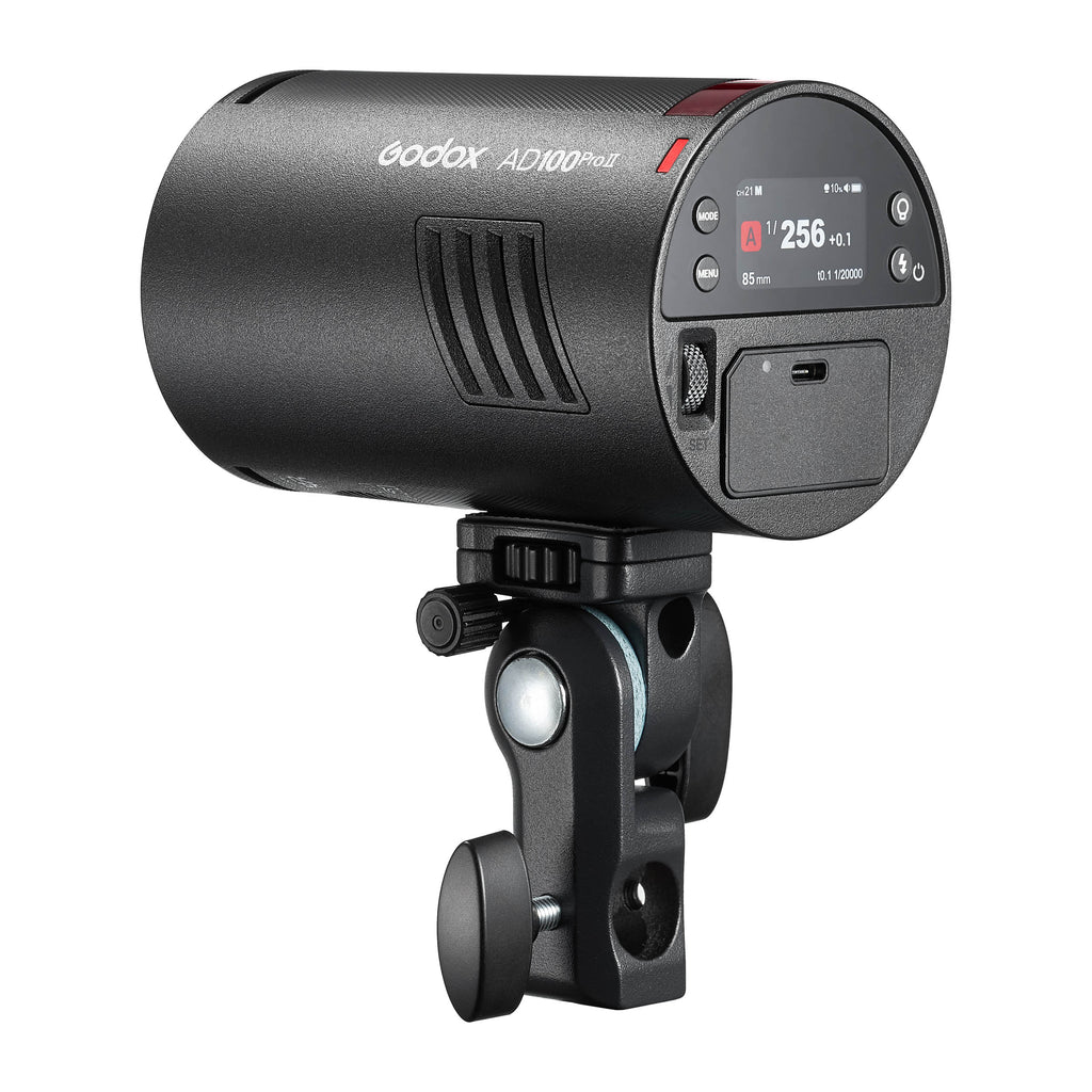 The Godox AD100ProII Pocket Flash is a compact yet powerful 100Ws battery-powered studio flash, designed for mobile photographers who require professional lighting in a form factor similar to a standard drink can. Delivering up to 100Ws of flash performance with improved cooling, refined optics, and advanced TTL and High-Speed Sync support, the AD100ProII is ideal for weddings, events, on-location portraits, travel photography, as well as creative off-camera flash setups. Featuring a new and improved high-contrast full-colour screen, compatibility with Godox X-Series 2.4GHz Wireless triggers, a long-lasting USB-C rechargeable battery, and a versatile magnetic modifier system, the AD100ProII gives you access to studio-level lighting in an ultra-portable and pocketable package. Perfect for photographers who demand power, precision, and portability.