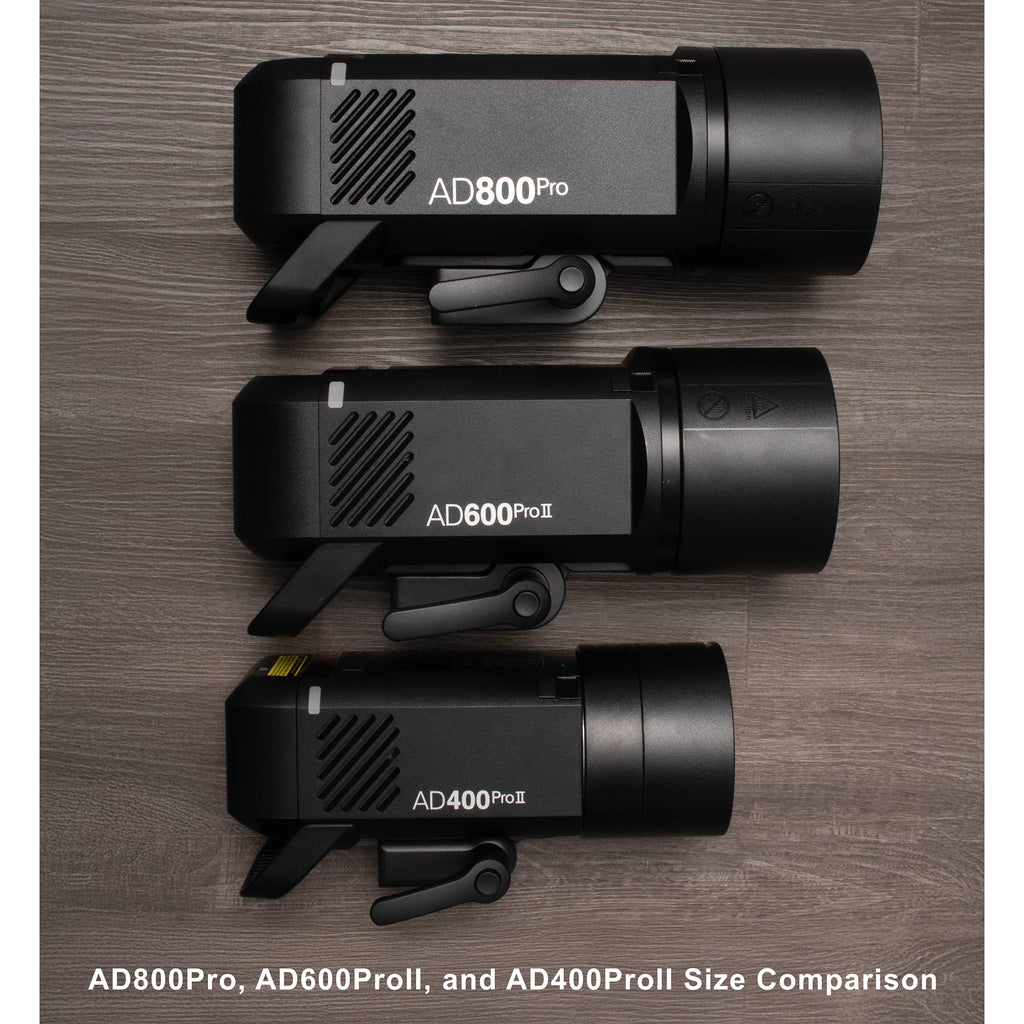 The AD400ProII now features a 10-Stop power range, going from 1/1 down to 1/512-power in 1/10-Stop increments. Whether you require a large burst or a tiny kiss of light, the AD400ProII will be up for the task.