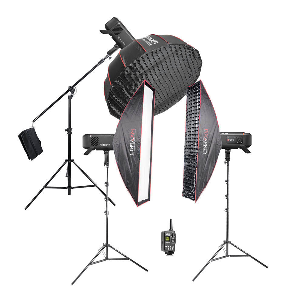 Flashes: 3 × Godox AD400PROII Wistro Outdoor Flash Kit (Bowens Mount, TTL Version)