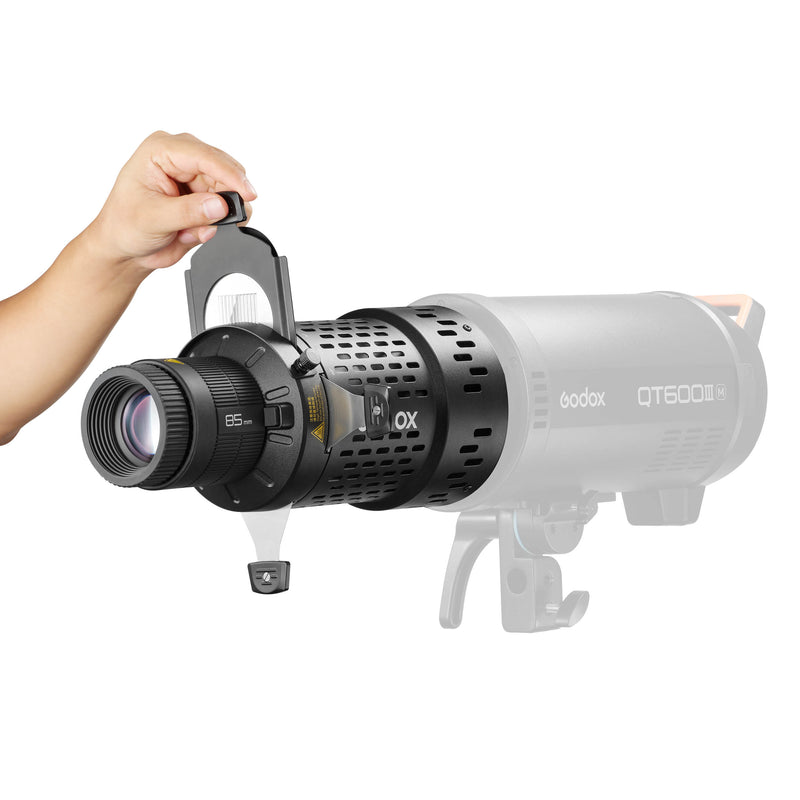 The GODOX BFP Flash Projection Attachment is a professional and trustworthy light-shaping tool, designed for use with Studio Strobes and battery Flashes that use the ever-popular Bowens S-Type mount (Other fittings are also available). The BFP Projection attachment produces crystal clear projections and has a 360° rotatable front, allowing you to quickly and easily change the orientation of your projections in mere seconds. With a selection of different Lens Optics available for it, the BFP gives you the power to project clean spots of light, precise shapes, and creative patterns, to help bring your vision to life. Perfect for Portrait, Fashion, Beauty, Commercial, Product, and Food photographers.