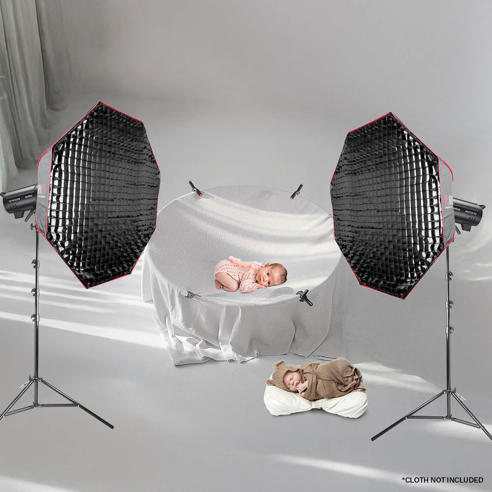 The included DP400III-V flash head delivers consistent output and fast recycle times, while the large umbrella softbox creates gentle, even light that is ideal for newborn skin tones and delicate features. Paired with a professional baby posing beanbag and butterfly pillow, this kit gives you the essential tools needed for classic curled, side-lying and supported newborn poses.