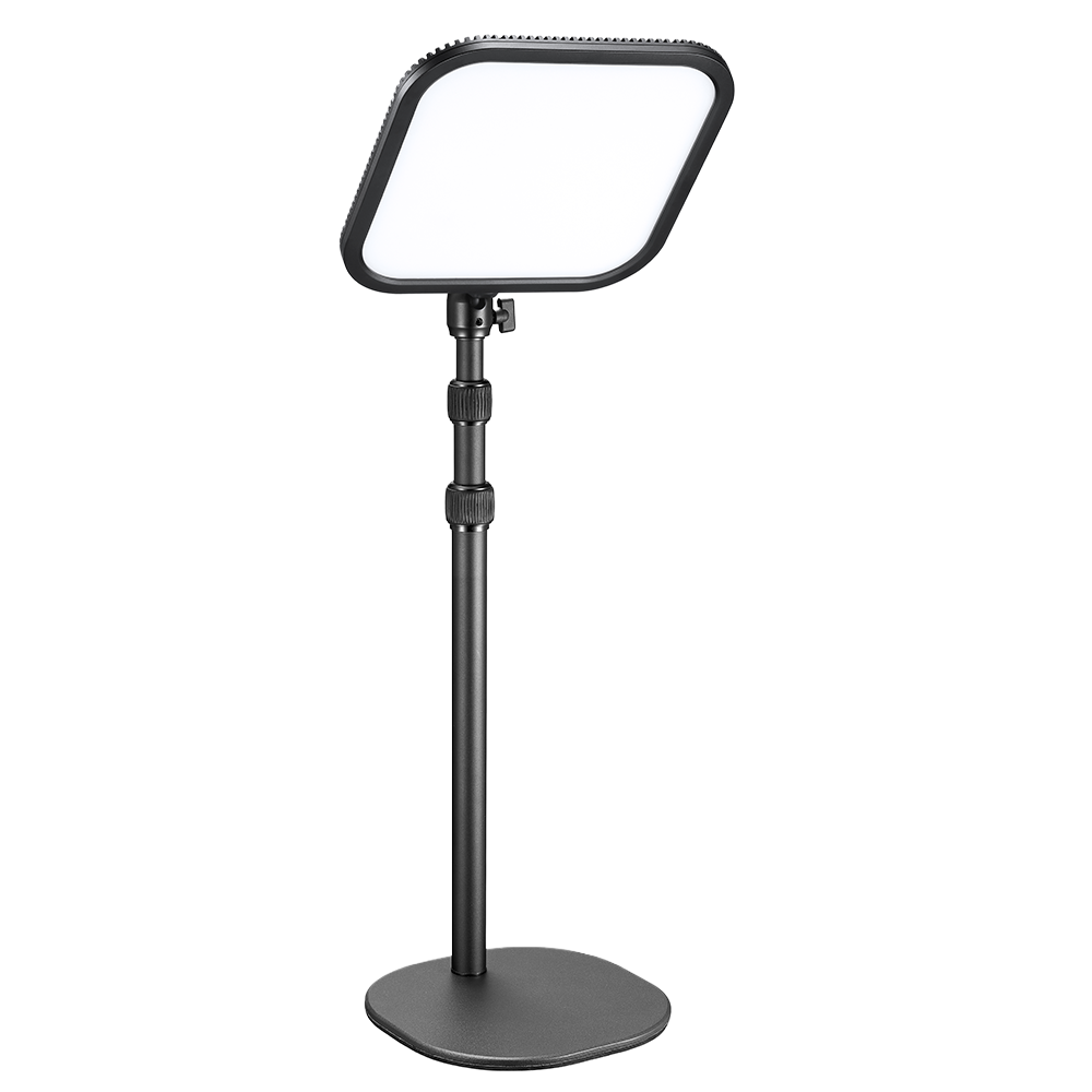 The Godox ES30 Live-Streaming LED Light features a slim, modern design with durable metal construction and a desk-mounted telescopic standideal for compact setups.