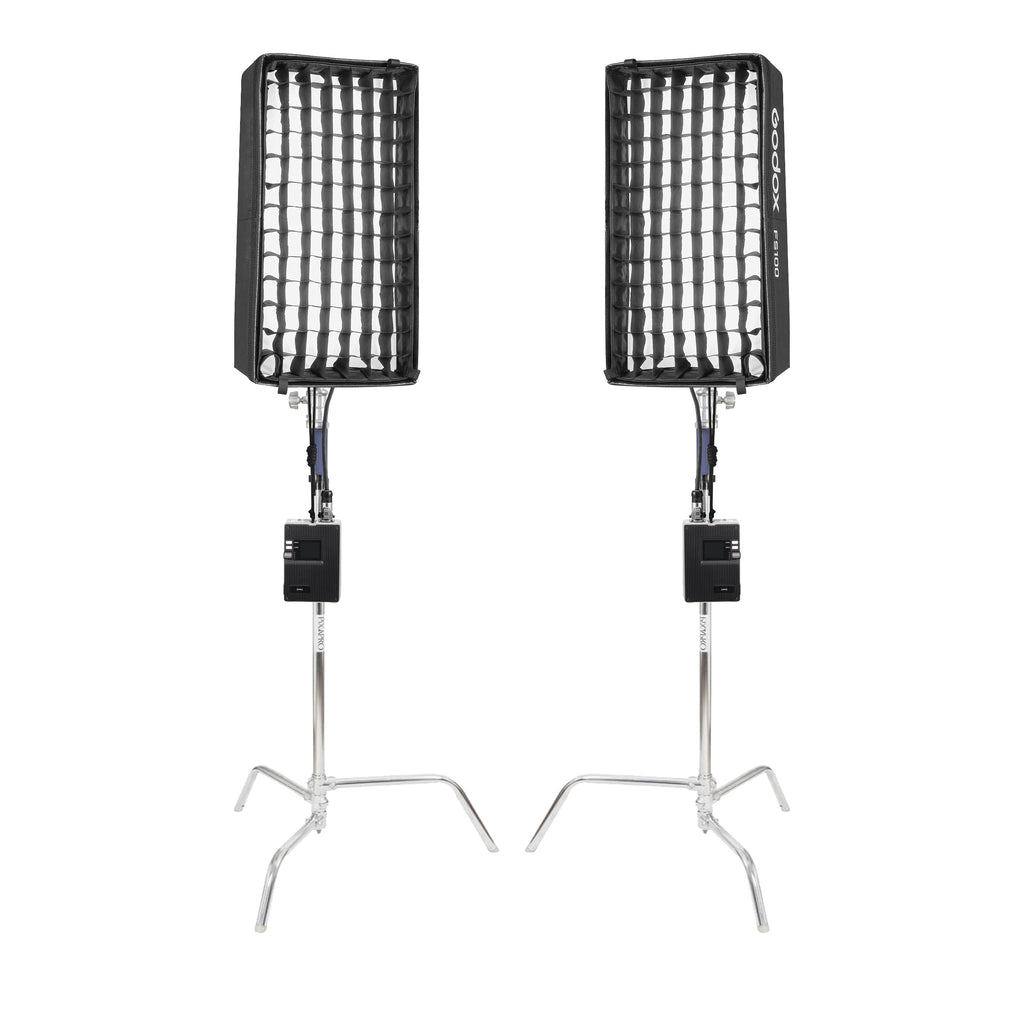 The Godox FL100R RGB LED Flexible Light Mat Twin Kit is a professional continuous lighting solution designed for photographers, videographers, podcasters, and content creators. This versatile kit includes two ultra-thin, 1'x2' flexible RGB LED panels that deliver high-quality, adjustable lighting with a CRI and TLCI rating of °¥95, ensuring accurate colour reproduction. The FL100R light mats offer multiple control methods for customizable control, making them ideal for both studio and on-location shoots. Also included are 300cm heavy-duty C-stands made from durable stainless steel, providing stable and reliable support for your lighting setup. Whether you're shooting video, livestreaming, or capturing stills, this twin kit offers a powerful and portable lighting solution.