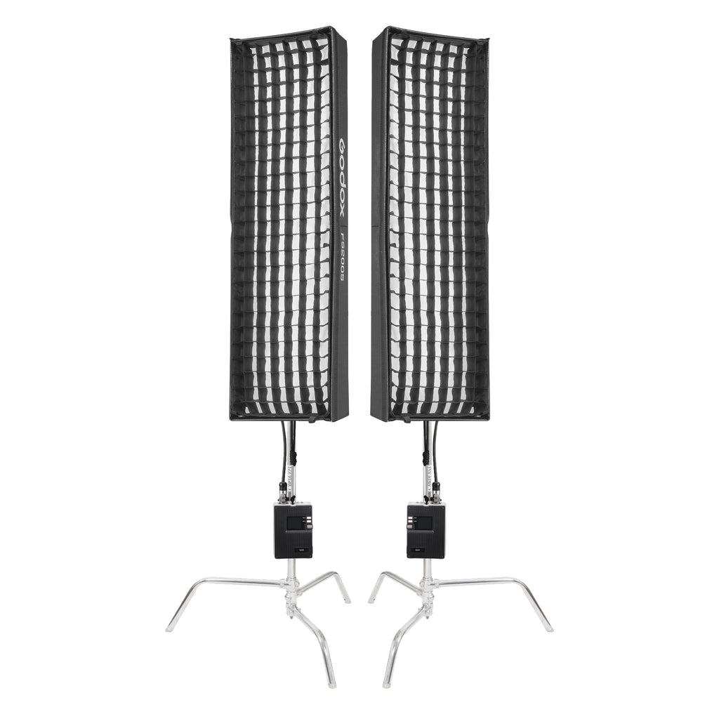 The Godox FL200SR RGB LED Flexible Light Mat Twin Kit is a powerful, professional continuous lighting solution designed for photographers, videographers, content creators, and podcasters. This high-performance RGB lighting kit includes two ultra-thin 1ƒ”4 ft flexible LED panels that offer vibrant, fully adjustable lighting with a CRI and TLCI of °¥95, ensuring accurate colour reproduction for video production, studio photography, livestreaming, and content creation. The FL200SR LED light mats support versatile control options including onboard controls, Bluetooth via the Godox Light App, and DMX compatibility, enabling seamless lighting adjustments in both studio setups and on-location shoots. For maximum stability, the kit includes two 300cm heavy-duty stainless steel C-stands, ideal for demanding lighting environments. Whether you're filming interviews, streaming live, or capturing high-end photo content, the Godox FL200SR Twin Kit provides portable, professional-grade RGB LED lighting for a wide range of creative workflows.