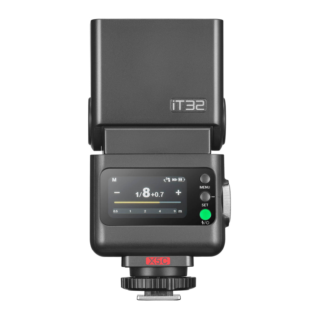 The iT32 features a built-in Godox 2.4GHz X-System receiver, combined with the X5's 2.4GHz wireless transmitter, which works seamlessly for instant, automatic communication without the need for manual pairing. When used together, the iT32 and X5 function as a master unit capable of triggering multiple Godox flashes at once. Even when separated, the X5 can still control the iT32 and other flashes in the Godox 2.4GHz wireless X system, making multi-light setups quick, simple, and reliable.