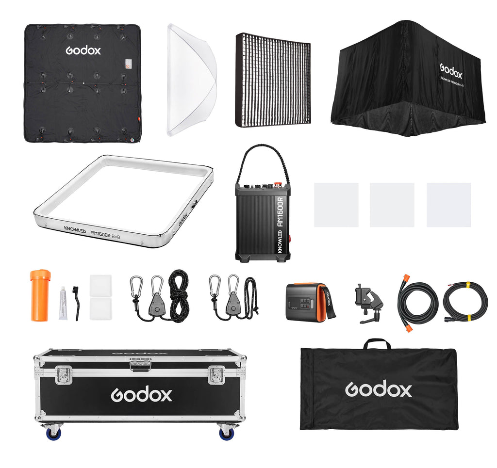 The Godox KNOWLED AM1600R 88K 8'x8' 1600W Inflatable RGB LED Cine Light is a high-performance, weather-resistant lighting solution designed for professional film and television production. This powerful full-colour RGB LED mat panel delivers outstanding colour accuracy with a CRI of ≈96 and a TLCI of ≈95, ensuring true-to-life colour rendering on set. Lightweight and portable, its inflatable design makes it easy to set up in both studio environments and challenging outdoor locations. With an IP54 weatherproof rating, built to withstand demanding production conditions. The AM1600R supports industry-standard DMX512 and CRMX protocols as well as convenient wireless control via the Godox Light App using Bluetooth. Ideal for cinematographers, gaffers, and lighting technicians working on feature films, TV series, commercials, and broadcast productions, the Godox KNOWLED AM1600R combines flexibility, durability, and professional-grade performance in one innovative lighting tool.