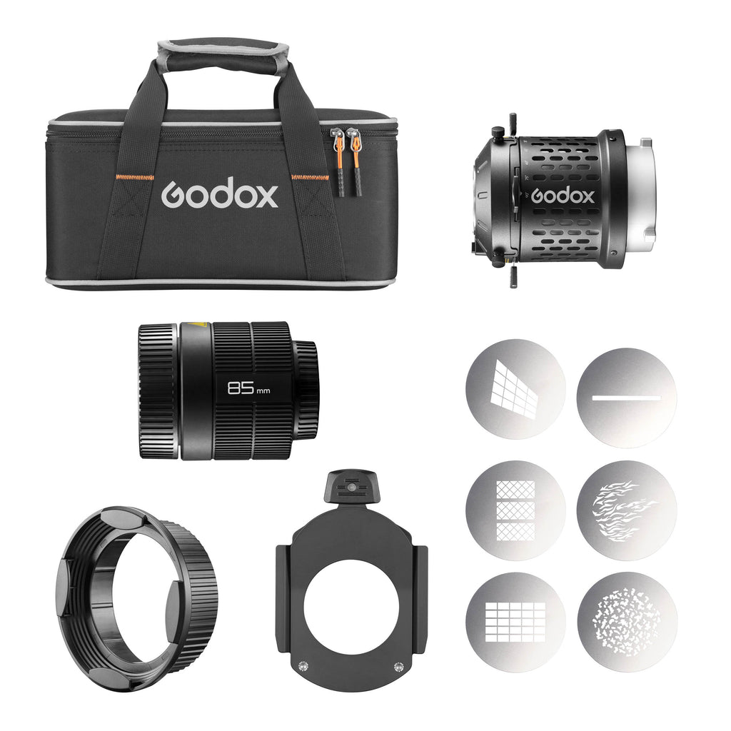 The heart of this kit is the GODOX BLP LED Projection Attachment with 85mm Lens:
