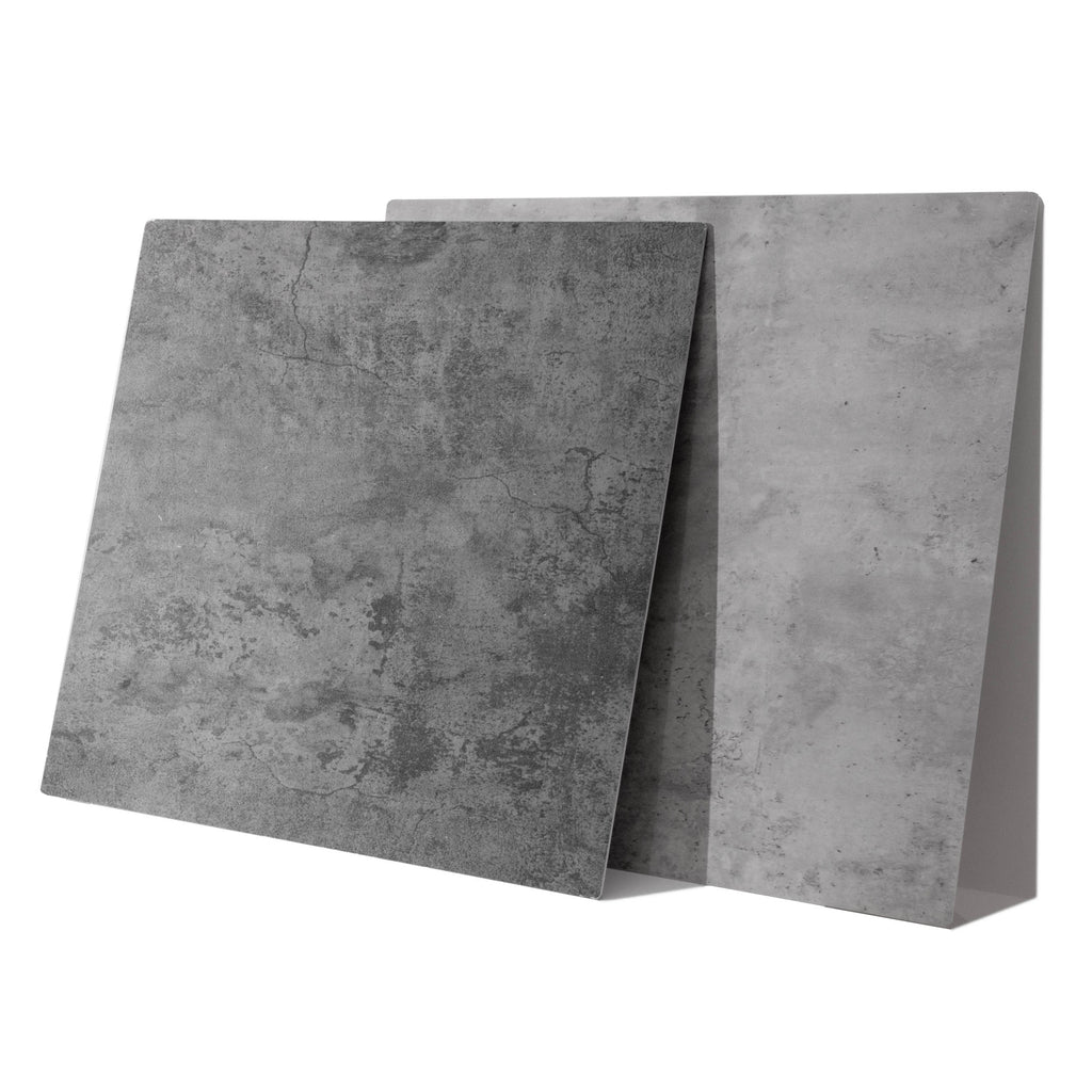 Background: 60×60 cm double-sided textured board (deep dark grey / light grey concrete look).