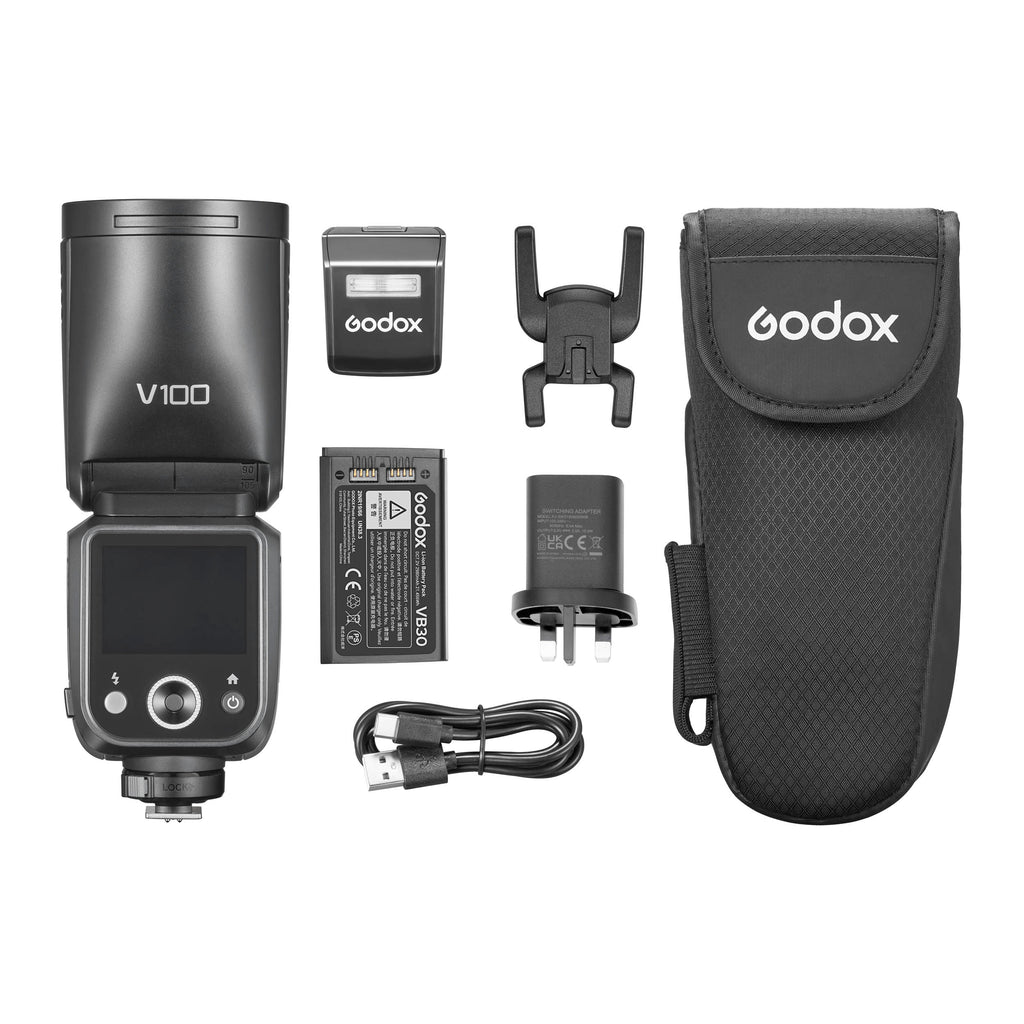 Read moreThe Godox V100 TTL Li-ion Round-Head On-Camera Speedlight Flash is a revolutionary 100Ws On-Camera Speedlite Flash. Its round flash head enables it to produce smooth-gradated lighting with natural-looking fall-off, and more pleasing results. The V100 TTL speedlight also features a magnetic modifier mount, enabling it to be used with a plethora of magnetic modifiers available for it. Powered by a High-Capacity 7.2V/2980mAh Rechargeable Lithium-ion Battery and featuring TTL and High-Speed Sync, Stroboscopic Multi-Flash, and a built-in 2.4GHz flash receiver, the Godox V100 is perfect for shooting Weddings, Portraits, Events, Fashion, Sports, Fitness and Advertising.