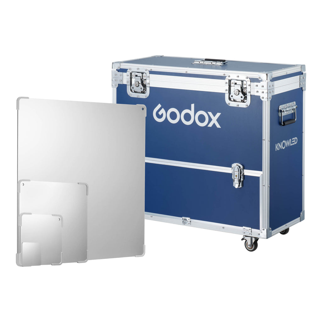 The Godox KNOWLED LiteFlow K2 Cine Light Reflector kit ships with four different-sized panels. The Kit comes with 4x 50cm Reflector Panels, 4x 25cm Reflector Panels, 4x 15cm Reflector Panels, and 4x 7cm Reflector Panels.