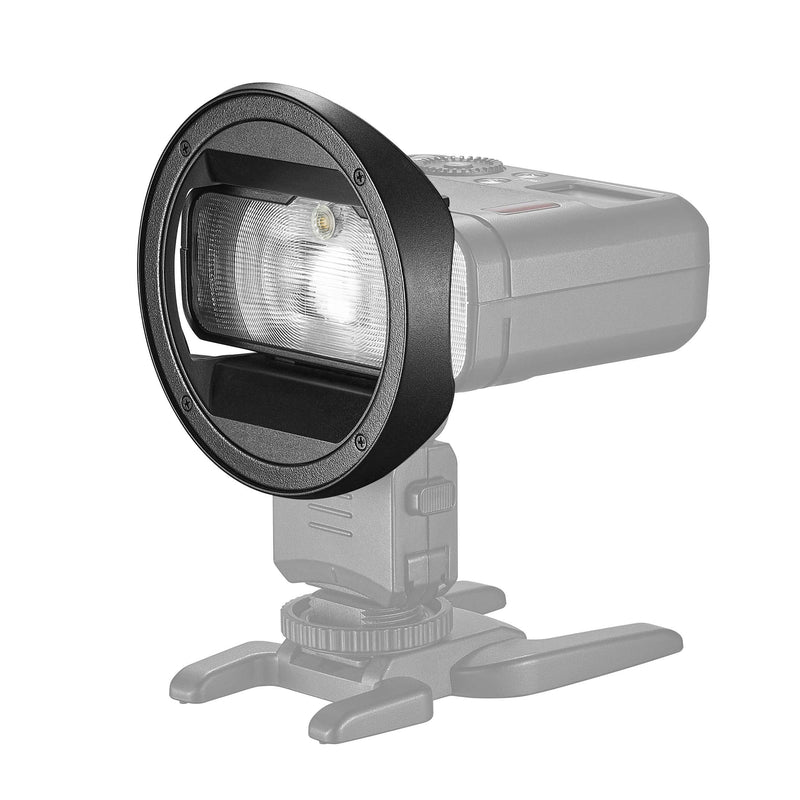 The Godox MF-CB bracket simply clips onto the front of your MF-12 macro flash, enabling you to mount any of the round-head accessories available in the AK-R1 accessory kit. This all-in-one kit allows you to quickly and conveniently expand your macro lighting options, giving you greater control over your results.