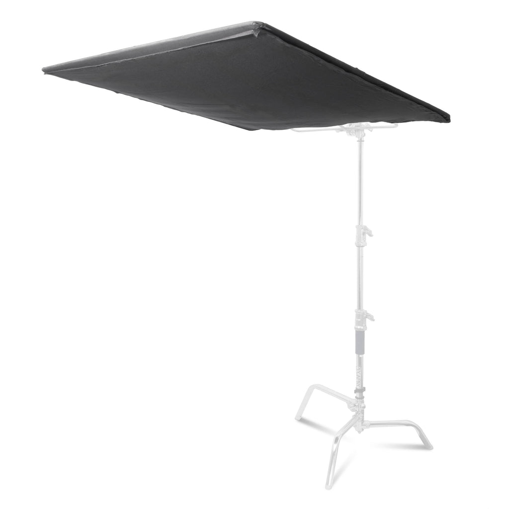 One of the key advantages of a Floppy Flag panel, as opposed to a traditional flag panel, is that floppies have an extra piece of fabric attached to one side that can be folded out effectively doubling its size. This feature gives you access to a whole new world of possibilities. You can boom the main flag frame overhead and have the extra fabric hang down vertically, to block light from above, and on one side simultaneously. You can also position the main flag frame vertically, and have the additional fabric hang straight down, giving you a flag double the height of the standard panel alone. The possibilities are virtually endless.