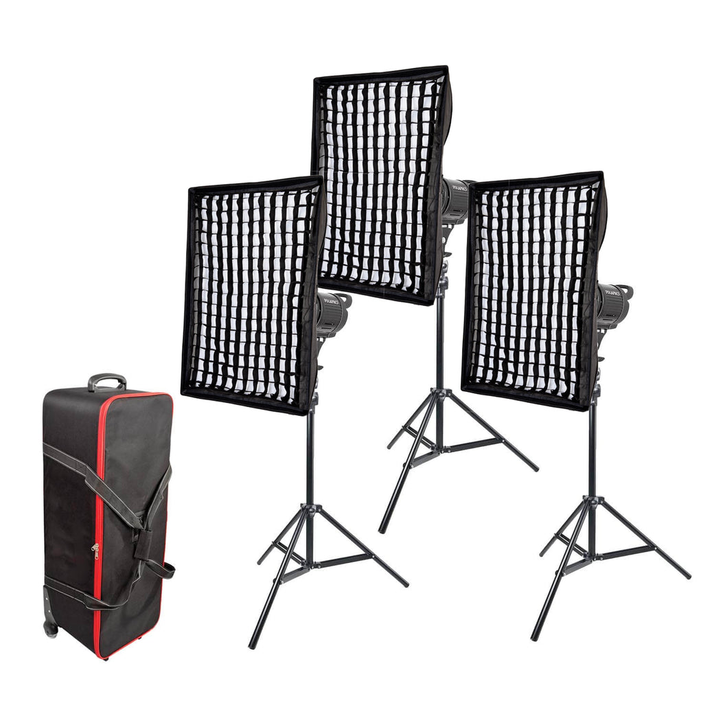 The PixaPro DayLite60D Handheld LED Photography Light Three Head Kit is a great high-end introduction kit for getting started with using continuous lighting allowing you to create the versatile three light point set-up with ease. This kit comprises of three compact and Robust Metal cased 60W 5600K Daylight-balanced mains-powered COB LED studio lights which features the latest High-Intensity Integrated LED technology. It has a CRI (Colour-Rendering Index) rating of ≥95 for accurate colour reproduction and a Bowens S-Type fitting allowing it to be compatible with most modifiers that have an S-Type fitting making it great for adding to your photography arsenal in the future. This kit also contains three light weight and durable 240cm air cushioned stands and three 60x90cm Rectangular Softboxes used to Control light and capture those smaller details while the 2 extra layers of diffusion helps to reduce any unwanted reflections or shadows from the shot and come supplied inside a practical, portable Rolling Case allowing for easy storage or to take out on to a location. This DayLite60D MKII Handheld LED Photography Light Three Head Kit works great for professional broadcast use, cinematography, Green Screen video, video interviews, Marketing and advertising video shooting, and YouTubers. It is also suitable for stills photography, including portraits and products etc.