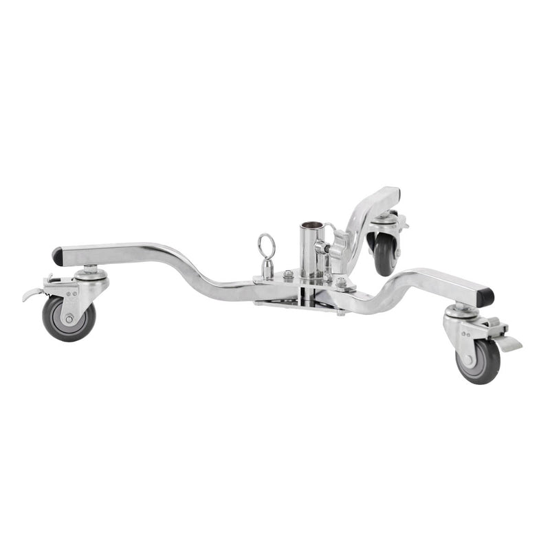 The PIXAPRO Medium Junior Runway Low Base Stand is a compact yet robust studio light stand solution made from High-Strength Stainless Steel. With a height of only 15cm, the Runway base stand enables you to mount your lights close to the ground, perfect for times when you need to hide a light fixture behind a part of the set. Sporting a 1-1/8" (28mm) junior-pin receiver, it can be used with larger cinema-grade and broadcast lights. It also accepts the centre column from a C-Stand, converting it into a mobile rolling stand. Featuring integrated caster wheels with brakes, it enables you to manoeuvre your lighting around the set with the greatest of ease. When not in use, the legs fold parallel to each other, making storage and transportation a hassle-free experience.
