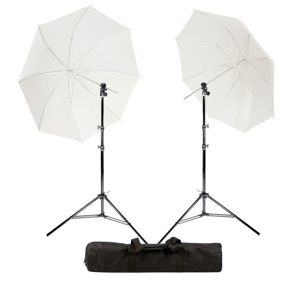 This Photography Umbrella Kit features everything you need to get you started on your strobist ventures, whether you are shooting indoors or outdoors. This Kit comes with two 190cm light stands and two 40" Translucent White Shoot-Through umbrellas, that produce soft illumination, with a wider distribution of light compared to what can be achieved with your Speedlite alone. This is great for shooting portrait group shots, as well as for shooting large products.