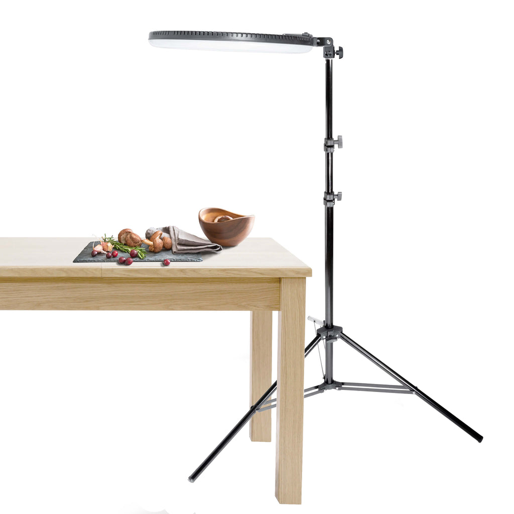This Flat-Lay Food Photography Kit has been put together to help you create stunning flat-lay food photographs for Website or social media use. This gives you the ability to adjust the colour-temperature of your light, to help emulate different times of the day, such as the warm glow of early morning, or late afternoon, or to emulate the cooler tones of mid-afternoon. The LR160 Table Top Ring Light Kit is ideal for Product and Food Photographers who want to emulate Natural Window Light.