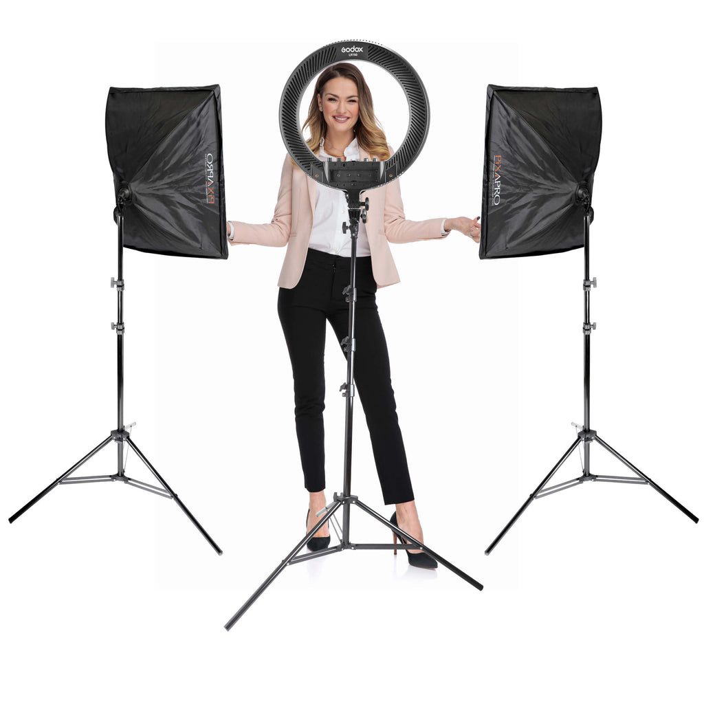 The LR160 Ringlight with EZYLiTE Live Stream Complete Kit is an affordable solution for people who want to get started in the world of Video and Streaming. This kit is ideal for people who want to stream on platforms such as YouTube, Twitch, Instagram, Facebook etc. This kit consists a LR160 bi-colour LED ring light, Ideal for use as the main light, and two PIXAPRO EZYLiTE 5500K daylight-balanced Fluorescent lights, with integrated 50x70cm Softboxes, which can be used as rim-lights, fill lights, or background lights, to help illuminate the main subject, for a high-fidelity stream with more clarity.