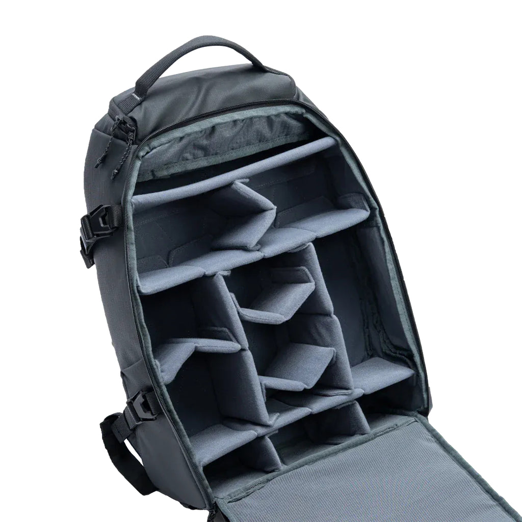 The SlimPak holds a full mirrorless or DSLR setup, multiple lenses, a drone, tripod, batteries, chargers, and even a change of clothes, alongside a 14–16” laptop. Its structured internal layout and smart divider system lock everything in place, preventing movement or impact when you’re on the move.