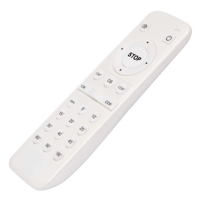 The replacement remote control for the PixaPro ORBIT300 Smart and ORBIT600 Smart Motorised Turntable. Enables you to speed up, slow down, and reverse the direction of the turntable remotely. It also allows you to select set degree increments on which you would like the turntable to rotate.