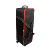 The Studio Trolley Bag is perfect for transporting your equipment to a shooting location or to store it optimally when not in use. The interior can be adjusted individually and is well-padded in order to protect sensitive devices. On the inside, the padding is joined with the corpus via a zipper; this improves the stability and rigidity of the case. The whole of the interior is Velcro lined, the bag can be separately up to 6 smaller compartments by the dividers. The lid is secured with a double ended zip, the corners are reinforced. You can carry the bag on two straps and use it like a travel bag. The trolley case is also fitted with large castors for easy transport.