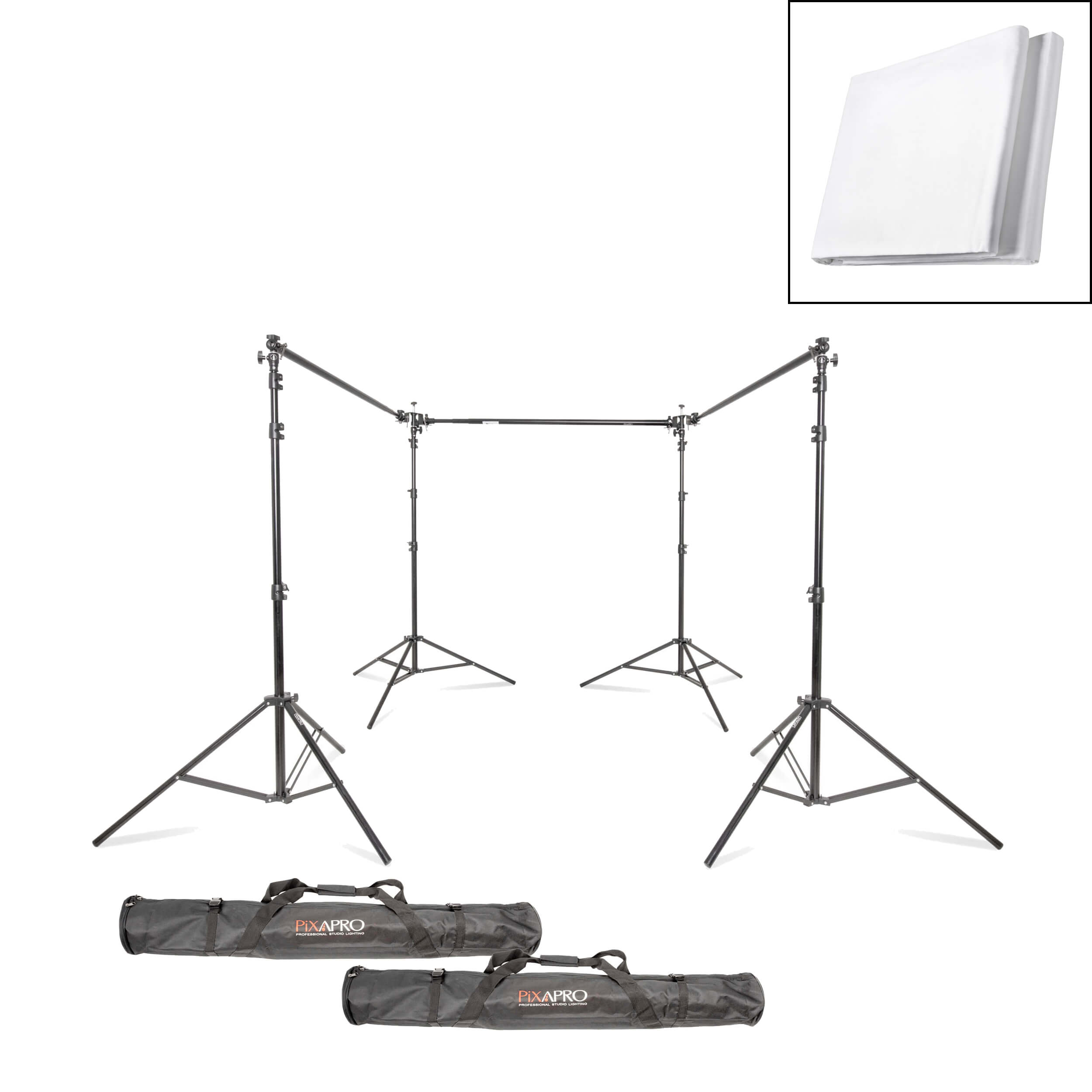The PixaPro 3x6m White Studio Backdrop and Triple Telescopic Stand Kit is the perfect background support system for owners of a large studio, which require larger photography, videography, or theatrical sets for their work and want a high-quality backdrop.