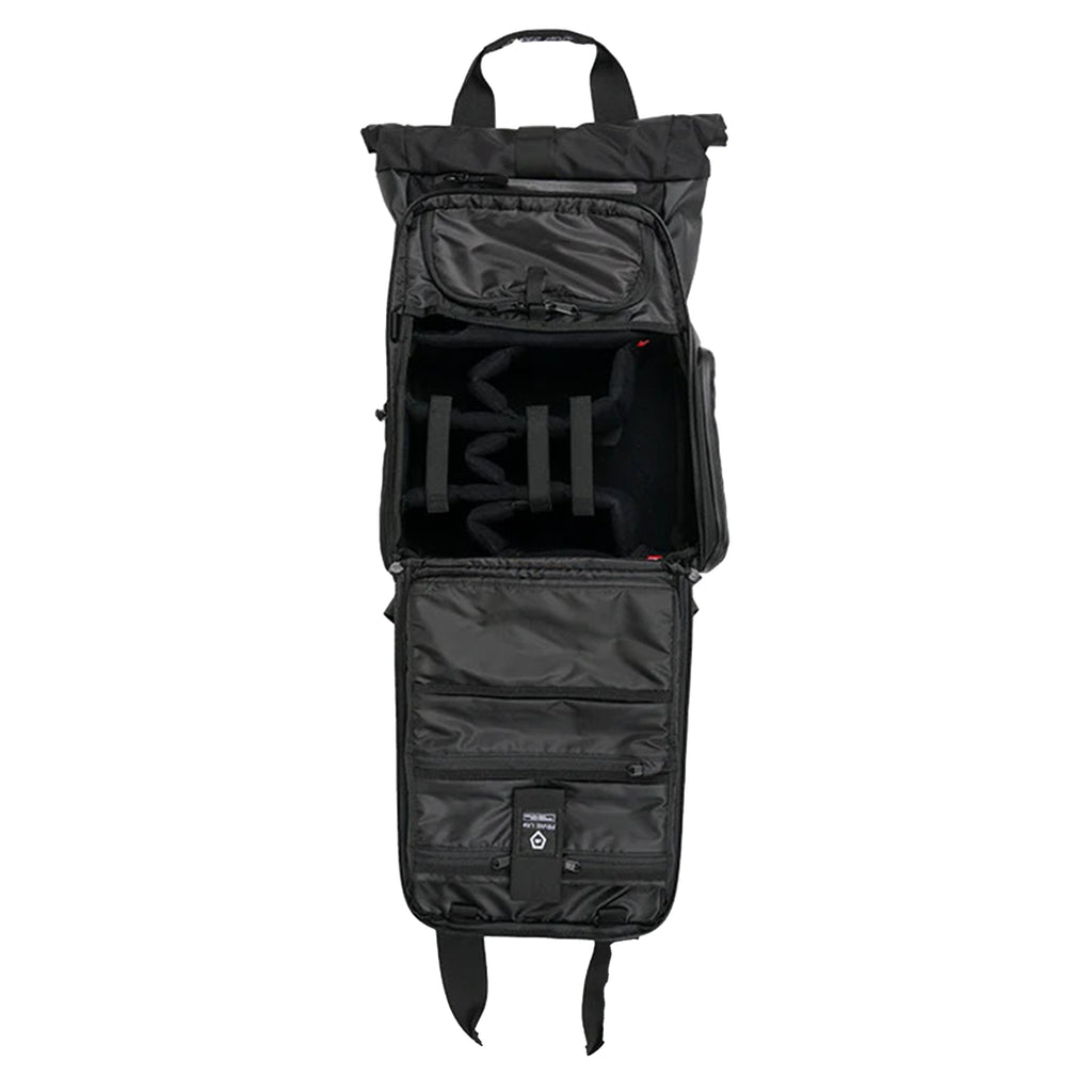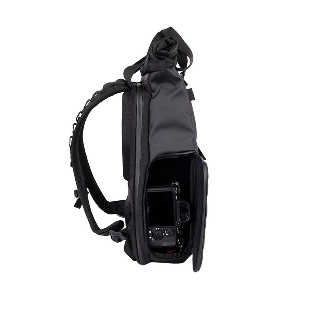 The PRVKE Lite might be small, but it’s built for serious creators. The built-in camera cube holds a full-frame mirrorless camera and up to four lenses, keeping your kit safe and organised with customisable dividers. If you’re travelling light, simply remove the dividers and use the space for personal items instead. The rolltop expands from 11L to 15L, offering flexible storage for changing loads, while the clamshell design makes packing effortless and efficient.